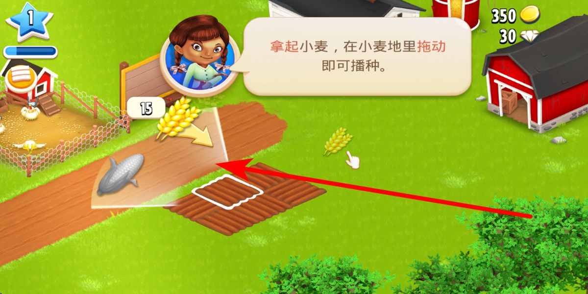 3、收獲小麥后及時(shí)拿起小麥種子,在已開墾好的小麥地范圍內(nèi)均勻拖動(dòng),將種子準(zhǔn)確播撒到對應(yīng)位置,從而完成播種,為農(nóng)場持續(xù)產(chǎn)出做準(zhǔn)備。