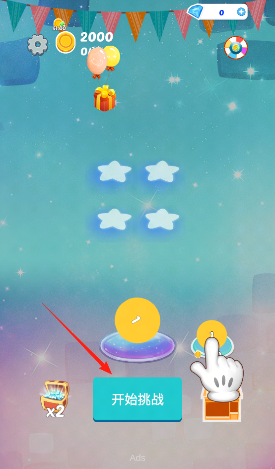 1、點(diǎn)開始挑戰(zhàn)按鈕就能進(jìn)入游戲,左上角2000金幣是初始資金,可以買道具或解鎖新角色,寶箱圖標(biāo)提示有雙倍獎(jiǎng)勵(lì)機(jī)會(huì)別忘了領(lǐng)。