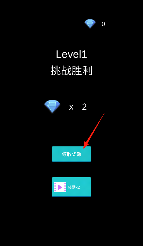 3、挑戰(zhàn)勝利直接送2顆藍(lán)鉆石,點(diǎn)領(lǐng)取獎(jiǎng)勵(lì)就能存進(jìn)賬戶,想賺雙倍就點(diǎn)下面那個(gè)帶播放圖標(biāo)的按鈕,不過(guò)可能要看完廣告才能拿到額外獎(jiǎng)勵(lì)哦。