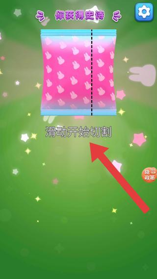 1、玩家在一堆盲袋中雙擊進(jìn)行搖晃得到一個(gè)粉色盲袋,獲得史詩(shī)級(jí)別的,根據(jù)提示滑動(dòng)開(kāi)始切割。