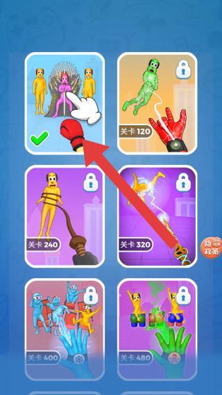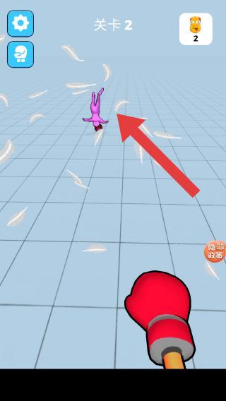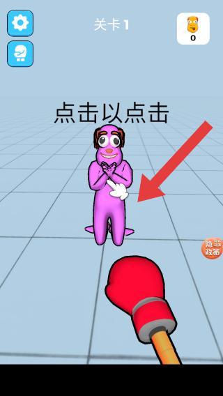 2、呈現(xiàn)了關(guān)卡1的游玩場景,玩家需要根據(jù)文字提示:點擊以點擊進(jìn)行相對應(yīng)的操作,一拳將角色擊飛出去。