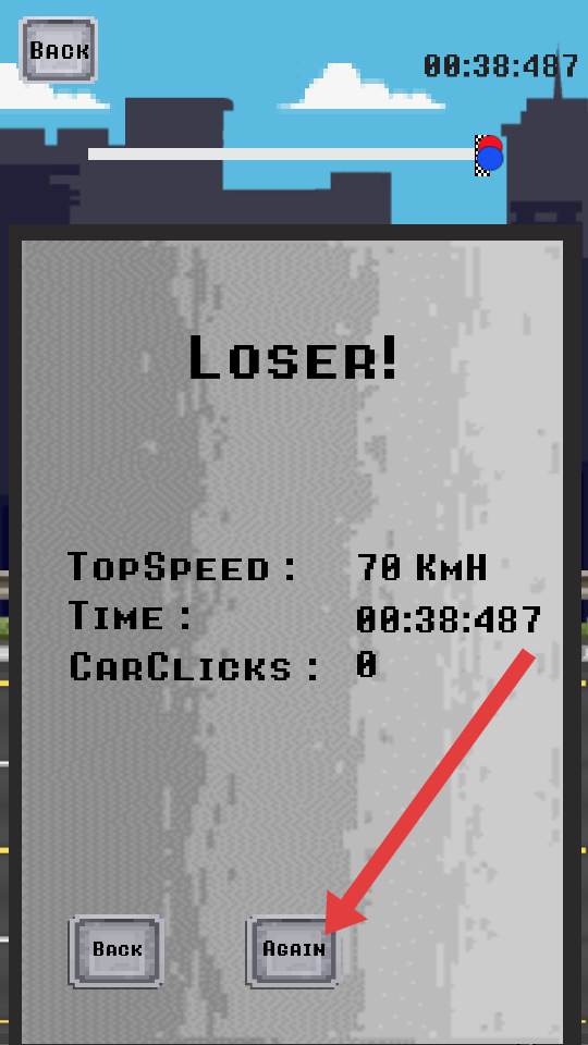 3、比賽失敗界面顯示Loser后,點(diǎn)擊下方Again的按鈕,重新開啟競(jìng)速挑戰(zhàn),繼續(xù)嘗試超越其他的對(duì)手。