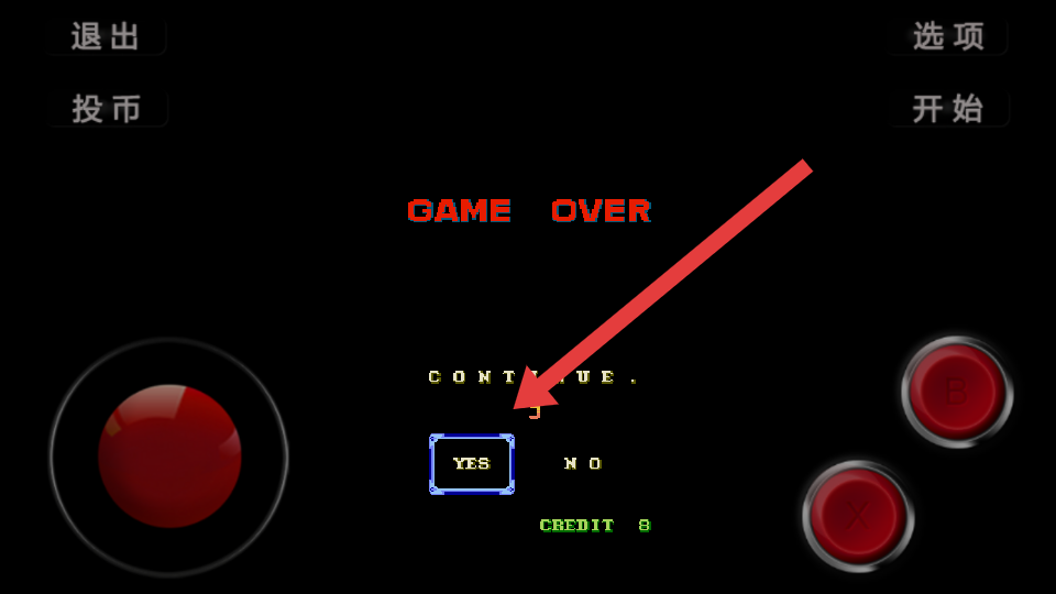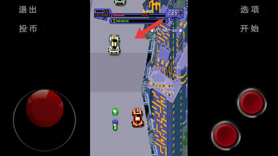 3、若駛出賽道則比賽失敗,界面顯示GAME OVER,需要點擊YES的選項,消耗credits繼續(xù)挑戰(zhàn),爭取更好成績。