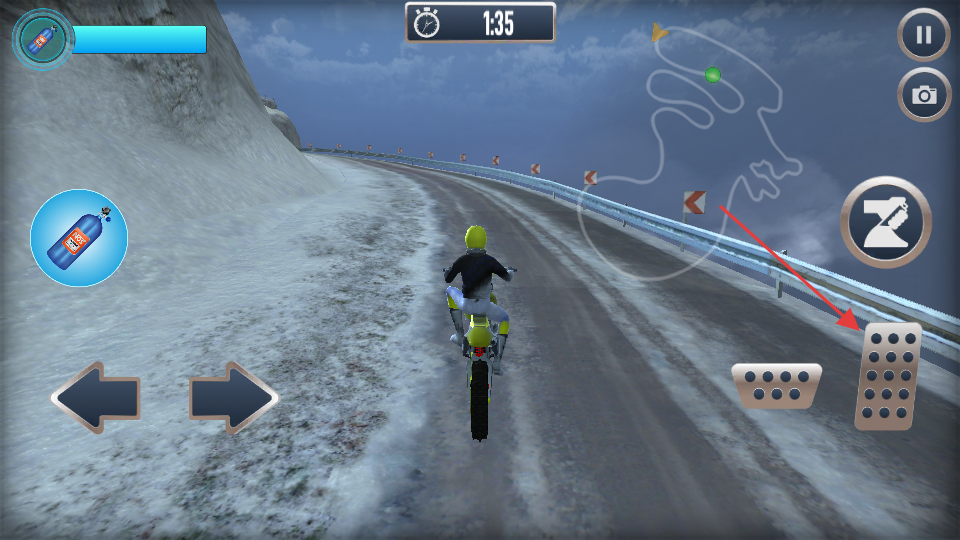 2、行駛中需要參與者關(guān)注頂部的時(shí)間、氮?dú)鈼l,氮?dú)馄孔髠?cè)的藍(lán)色圖標(biāo)可點(diǎn)擊使用,觸發(fā)了短時(shí)間的加速。