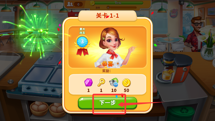 4、通關(guān)后點(diǎn)擊"繼續(xù)"按鈕,即可自動(dòng)跳轉(zhuǎn)至全新美食挑戰(zhàn)關(guān)卡。
