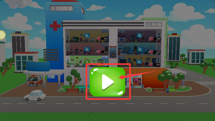 1、啟動(dòng)游戲后,點(diǎn)擊醫(yī)院主界面的"開始接診"按鈕進(jìn)入游戲。