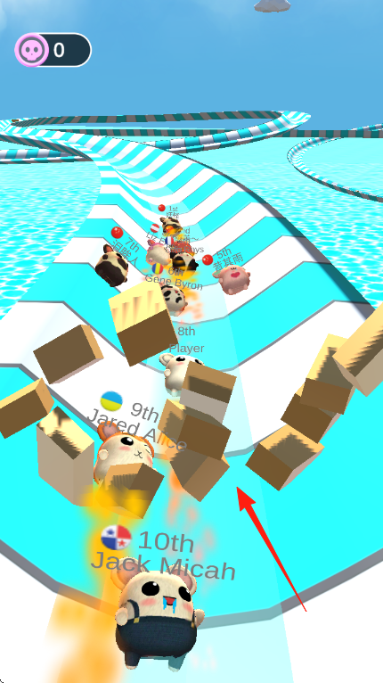 1、控制倉(cāng)鼠滑行:通過(guò)簡(jiǎn)單操作控制倉(cāng)鼠在水上賽道滑行,調(diào)整方向以適應(yīng)彎道和起伏地形,保持穩(wěn)定的速度,避免因碰撞或偏離賽道而落后。