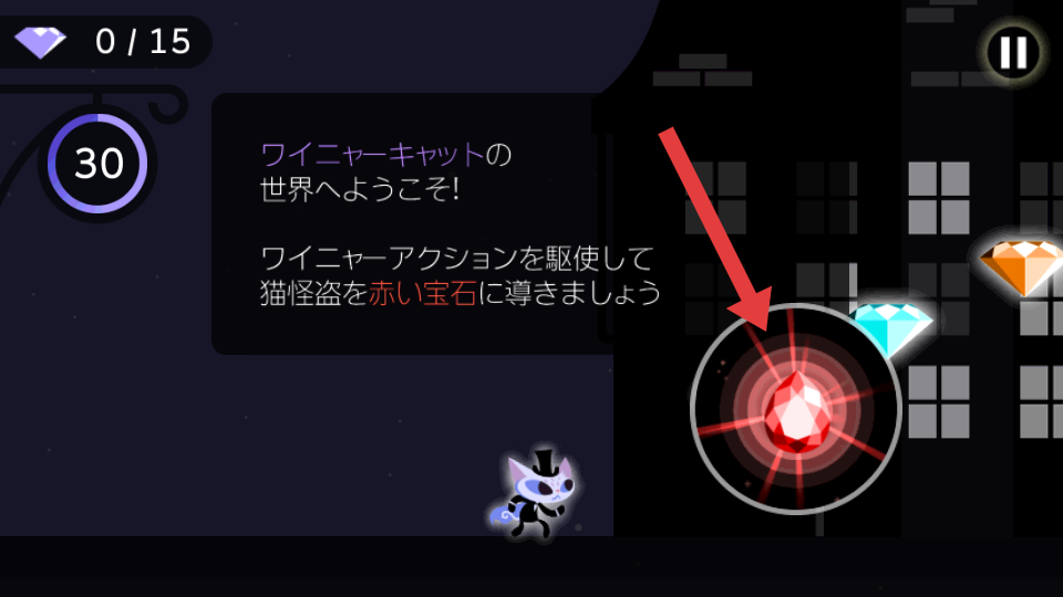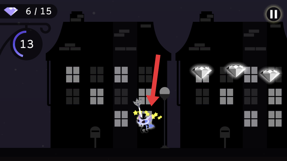 1、點(diǎn)擊操控的移動(dòng)方式:核心操作是點(diǎn)擊場(chǎng)景中具有墻壁的地方,怪盜貓自動(dòng)勾住墻壁實(shí)現(xiàn)移動(dòng),通過(guò)連續(xù)點(diǎn)擊不同墻壁位置,控制角色在高空?qǐng)鼍按┧蟆?