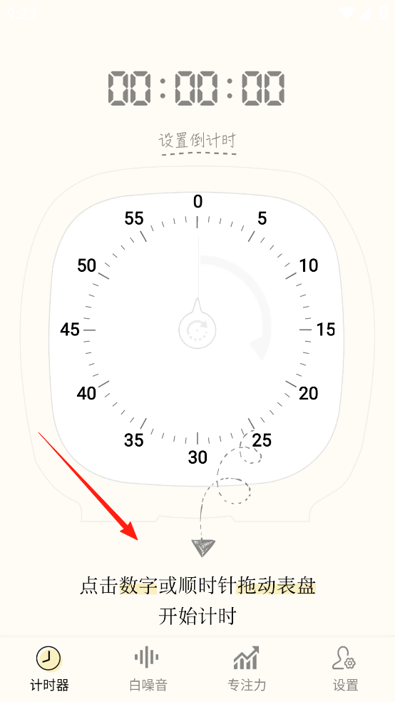 1、用戶可以點擊數(shù)字或者順時針拖動表盤來設(shè)置倒計時,操作方式很靈活,設(shè)置好后就能開啟計時,幫助用戶精準把控時間,比如在學(xué)習(xí)工作等需要定時的場景中使用。