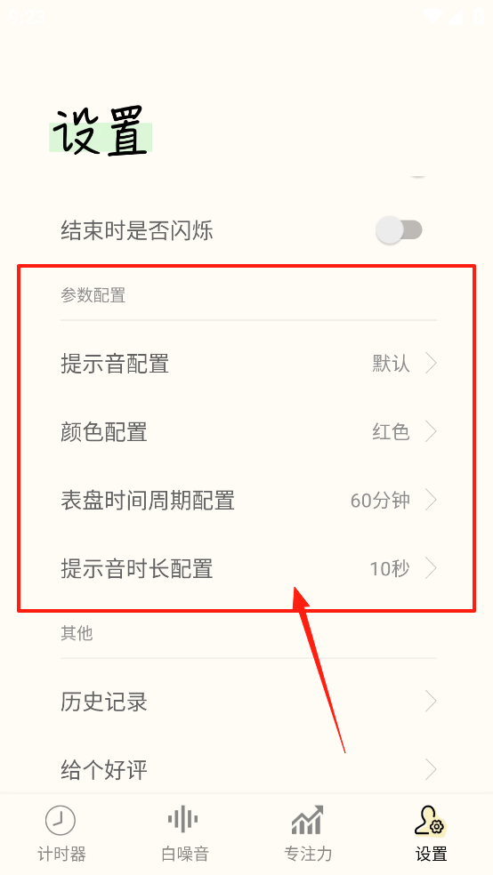 1、基礎(chǔ)設(shè)置操作:進入軟件后,可根據(jù)需求自定義提示音、表盤顏色和白噪音模式,選擇適合自己的設(shè)置組合,讓計時器以個性化狀態(tài)運行,提供舒適的環(huán)境。