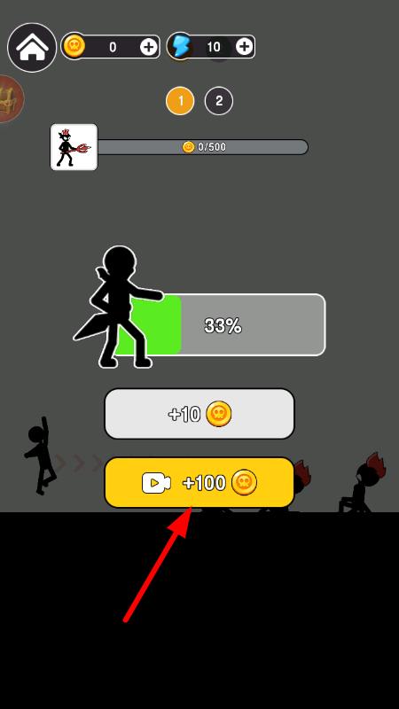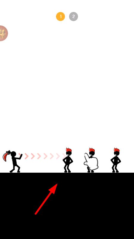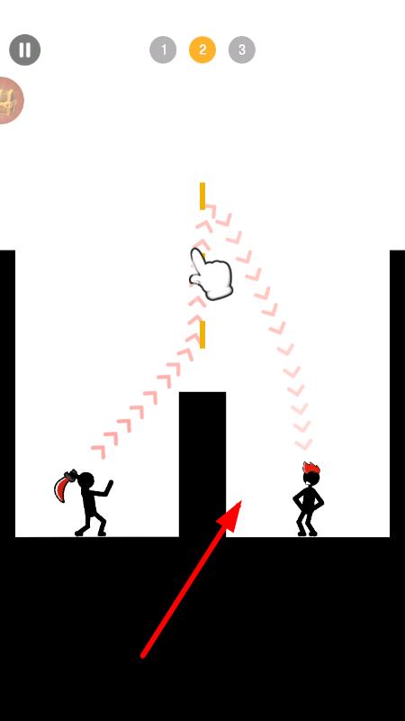 1、進(jìn)入游戲后,觀察戰(zhàn)場(chǎng)中火柴人與boss的位置,在屏幕上用手指畫出線條,確定武器投擲的路徑與角度,完成首次攻擊嘗試。