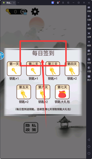 1、每日上線第一時(shí)間要查看您的簽到獎(jiǎng)勵(lì)哦,得到大量資源,方便后續(xù)游戲體驗(yàn)哦。