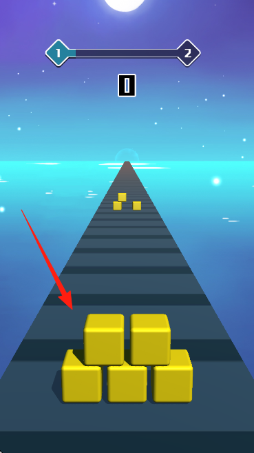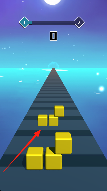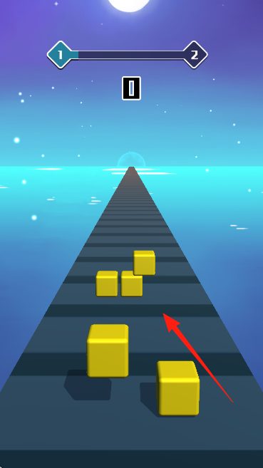 1、游戲開始關(guān)注上方進(jìn)度條,了解當(dāng)前關(guān)卡進(jìn)度,操控方塊按紅箭頭方向在狹長道路上前進(jìn)。