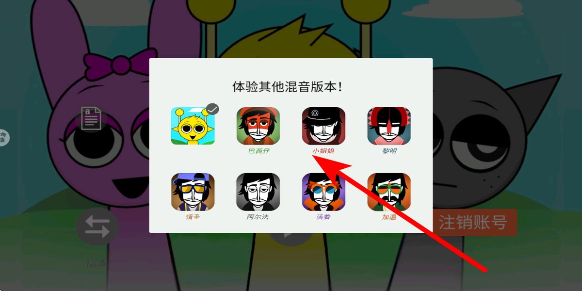 2、進(jìn)入混音模式后,界面中會有多個(gè)角色形象,每個(gè)角色都有獨(dú)特音效,點(diǎn)擊角色能播放其聲音,還可通過下方不同圖標(biāo)按鈕搭配音效,創(chuàng)造節(jié)奏組合。