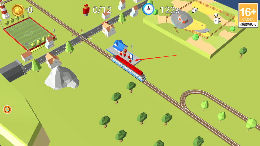 2、留意時(shí)間剩余【122s】,觀察火車行駛路線,當(dāng)火車經(jīng)過站點(diǎn)時(shí),讓其??枯d人,提升任務(wù)進(jìn)度。