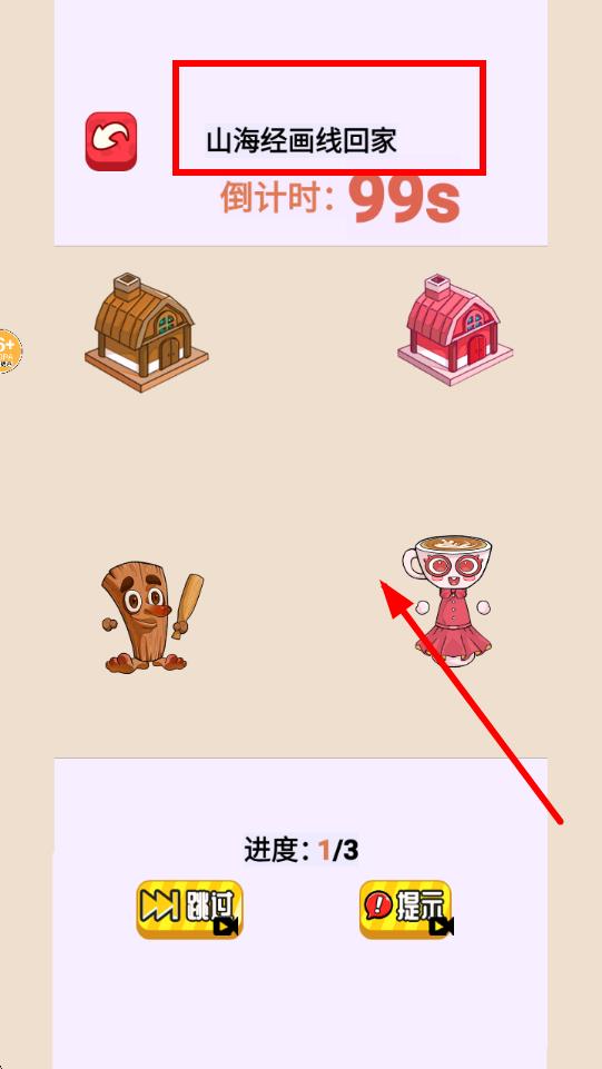 2、進(jìn)入山海經(jīng)畫線回家關(guān)卡后,留意99秒倒計(jì)時(shí),觀察角色與房屋,按指引為角色規(guī)劃路線,讓其回到對應(yīng)房屋。