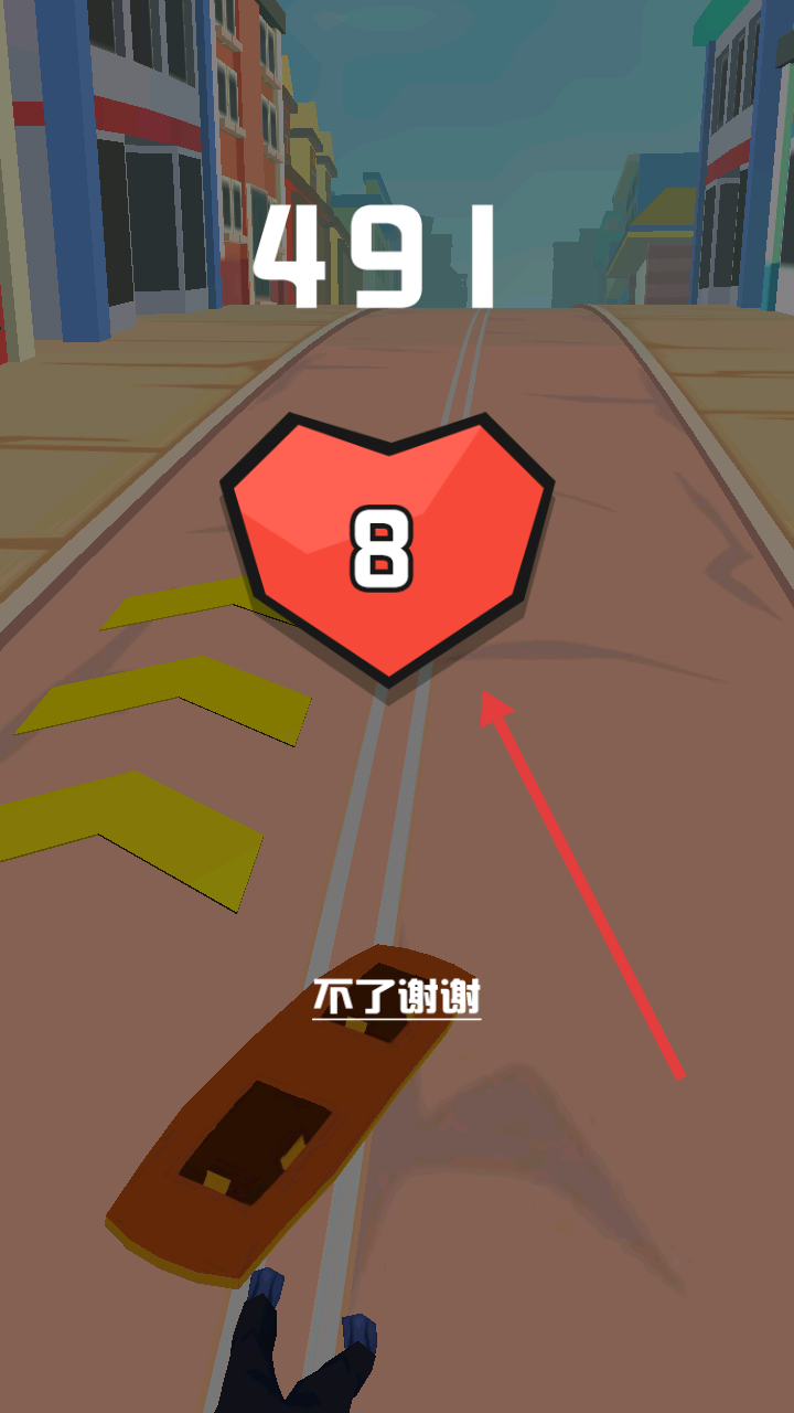 3、遇到491愛心彈窗,選擇不了謝謝放棄額外增益,專注保持滑行節(jié)奏,全力沖刺終點(diǎn)。