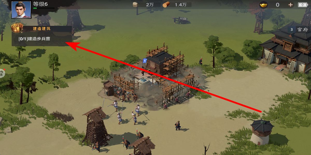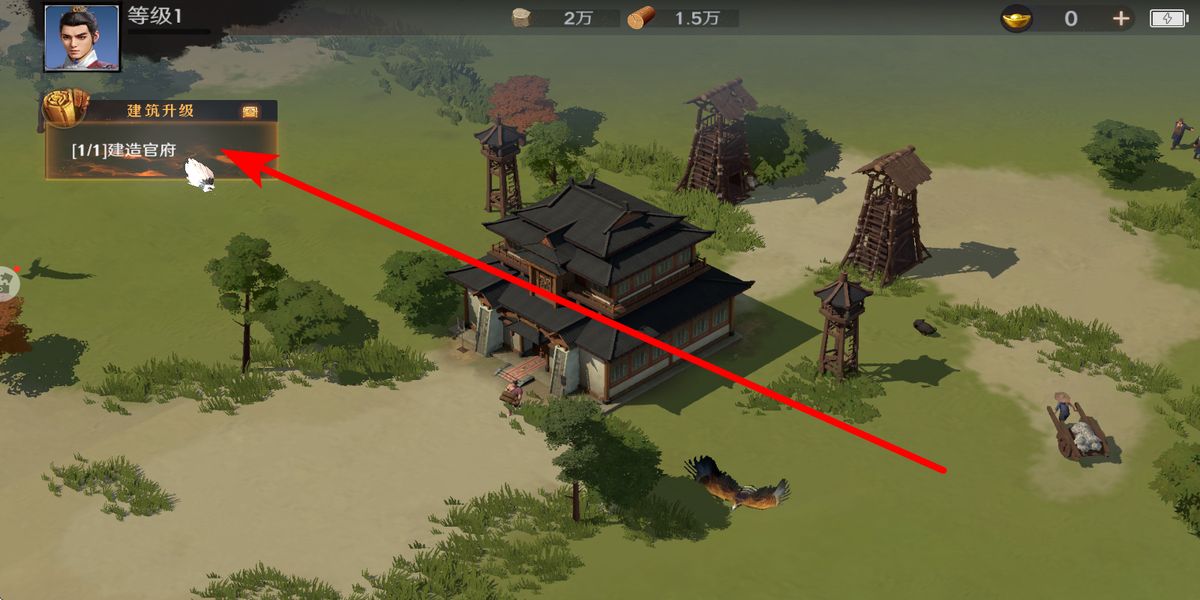 1、角色起步建造官府角色等級(jí)1時(shí),點(diǎn)擊建筑升級(jí)提示,消耗木材石料等資源建造官府,它是主城核心建筑,決定后續(xù)建筑解鎖與等級(jí)上限提升。
