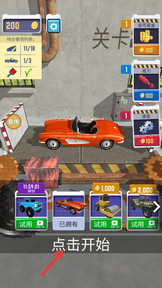 2、設(shè)備升級(jí)解鎖玩法:通過持續(xù)處理汽車積累資金,在設(shè)備界面查看不同液壓機(jī)的解鎖條件,滿足資金要求后即可解鎖,新設(shè)備投入使用后能顯著提升。