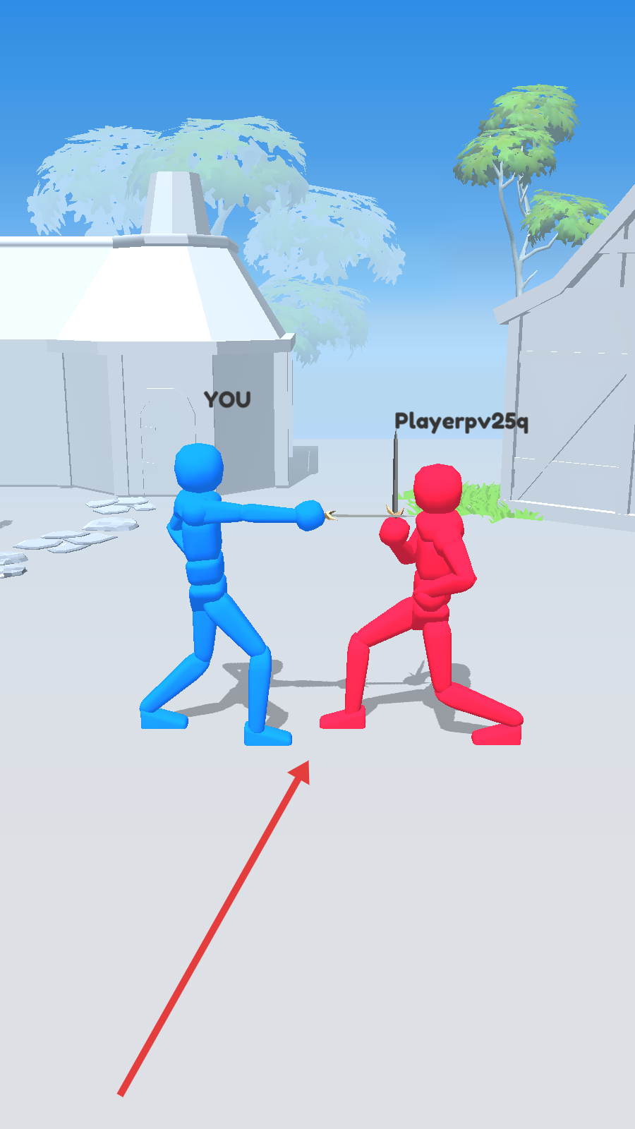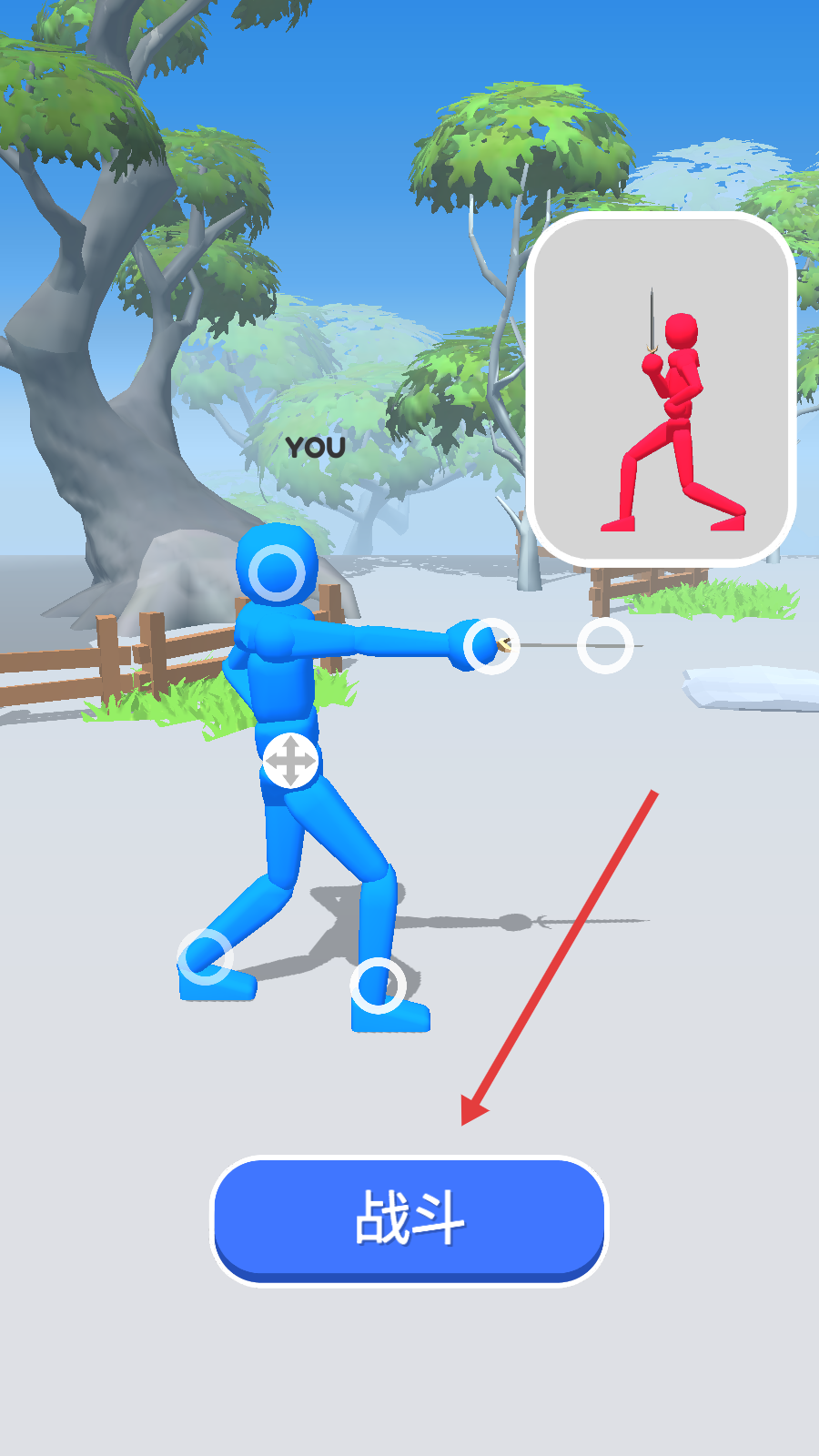 1、點擊戰(zhàn)斗,操控藍(lán)色火柴人,依據(jù)右側(cè)紅方動作提示,預(yù)判出招,用劍攻擊Playerpv25q。