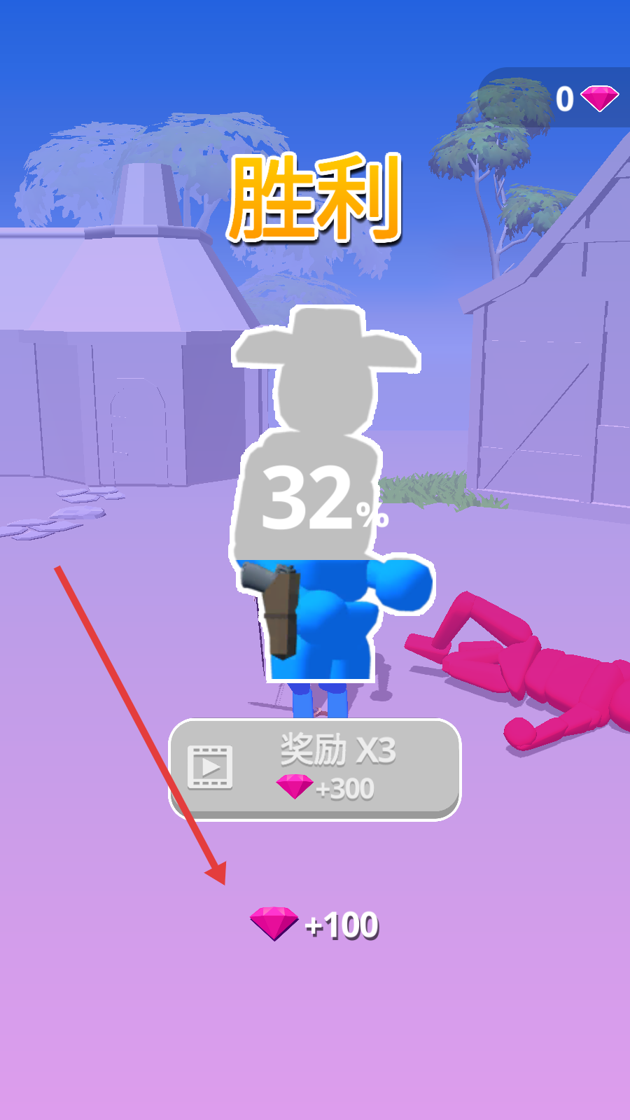 3、勝利后,獲取鉆石獎勵,可用于解鎖皮膚、升級武器,點擊繼續(xù),挑戰(zhàn)更多對手積累資源。