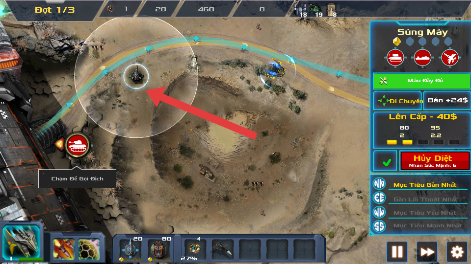 1、進(jìn)入關(guān)卡,點(diǎn)擊機(jī)槍單位選擇類型或者稱手的,用移動(dòng)的指令部署到相同路徑,攔截?cái)撤降牟筷?duì)。