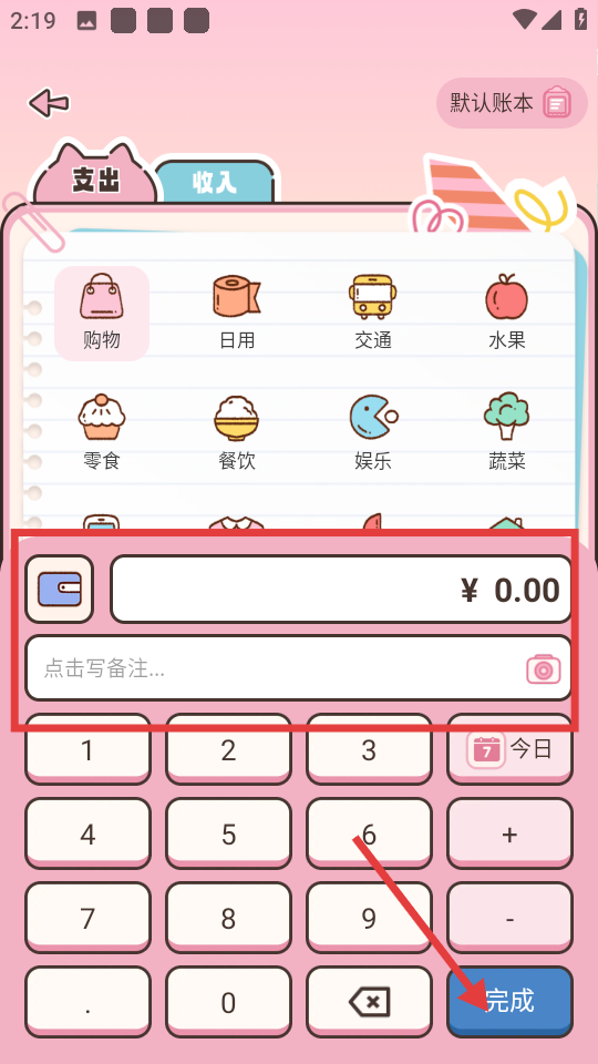 3、填金額,備注,點(diǎn)完成記錄支出賬單。