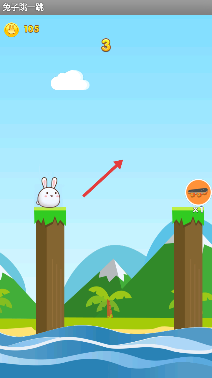 1、進入游戲主界面后,點擊開始跑酷選擇初始兔子形象,進入關(guān)卡后長按屏幕蓄力,觀察屏幕上的力度條,松開手指即可讓兔子向前跳躍,嘗試落在前方第一個木樁上。