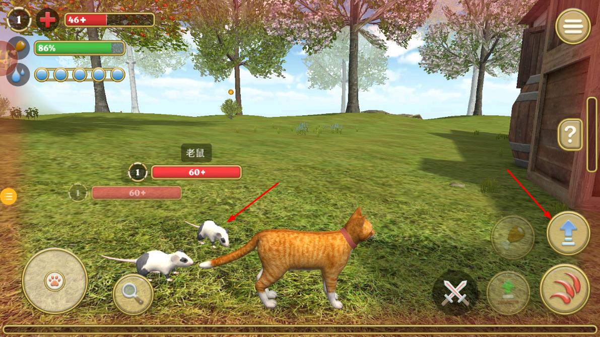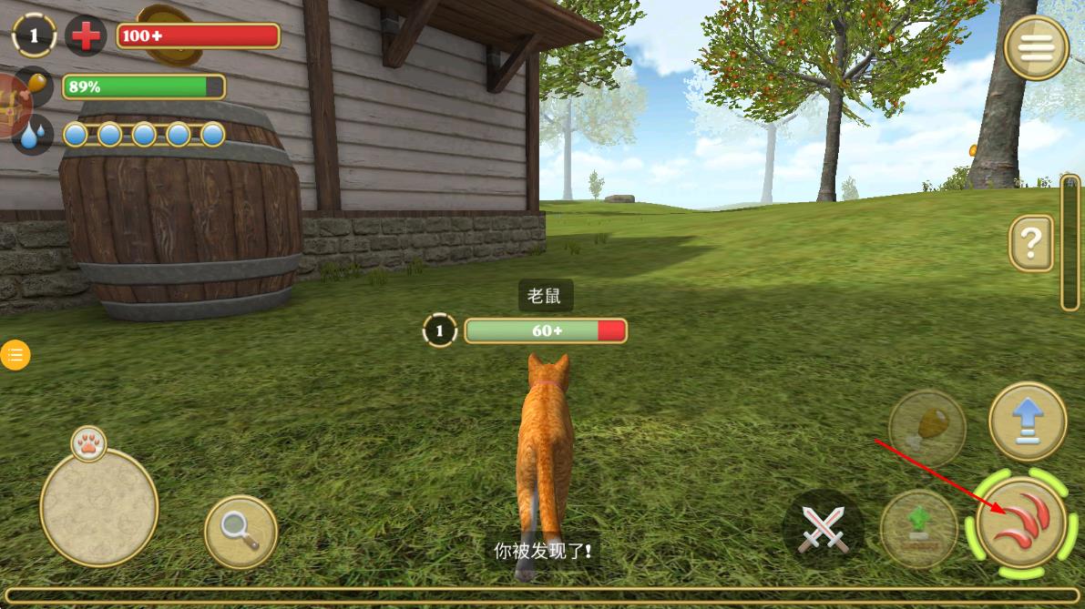 2、遇到【老鼠】被發(fā)現(xiàn)后,點(diǎn)擊右下角紅色爪痕狀按鈕,發(fā)起互動(dòng)或攻擊。