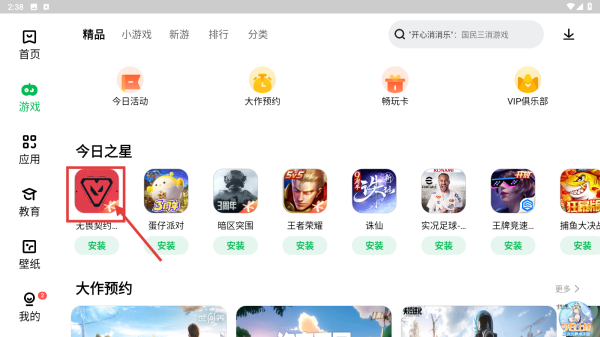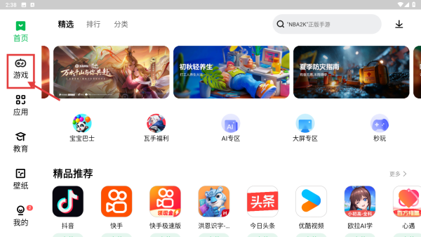 1、打開應用商店,點擊左側游戲選項,進入游戲分類頁面。