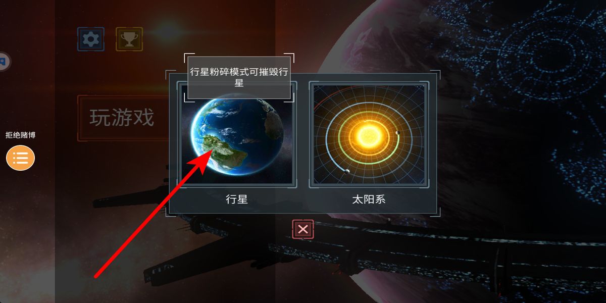 1、進入游戲后,先點擊玩游戲按鈕,接著會出現模式選擇界面,可選擇行星等模式,進入對應場景,開啟行星粉碎的體驗。