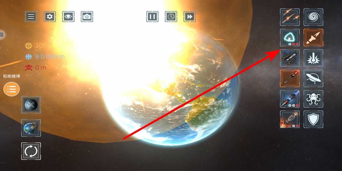 2、在行星粉碎的過程中,右側會出現各類道具,像不同的武器圖標,點擊這些道具,就能調用相應武器對行星進行破壞,感受粉碎行星。
