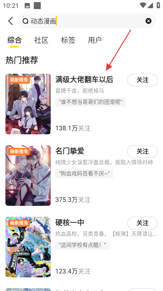 3、在搜索結(jié)果中,可選擇感興趣的動態(tài)漫畫作品查看。
