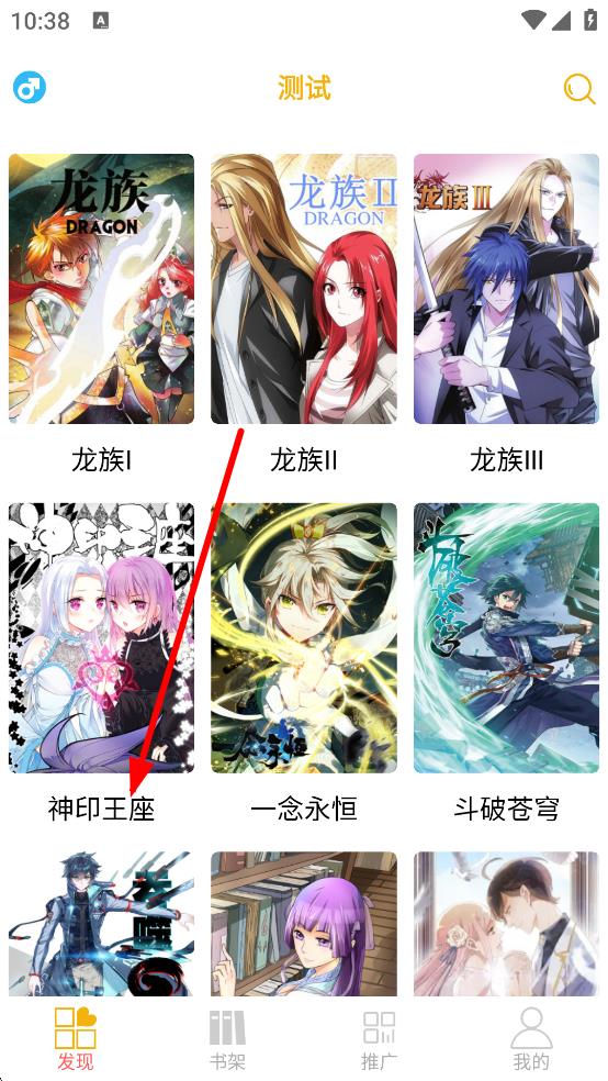 1、在發(fā)現(xiàn)頁面,點(diǎn)擊目標(biāo)漫畫,如神印王座,進(jìn)入相關(guān)頁面。