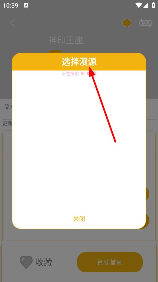 2、在彈出的選擇漫源的窗口中,等待漫源搜索完成。