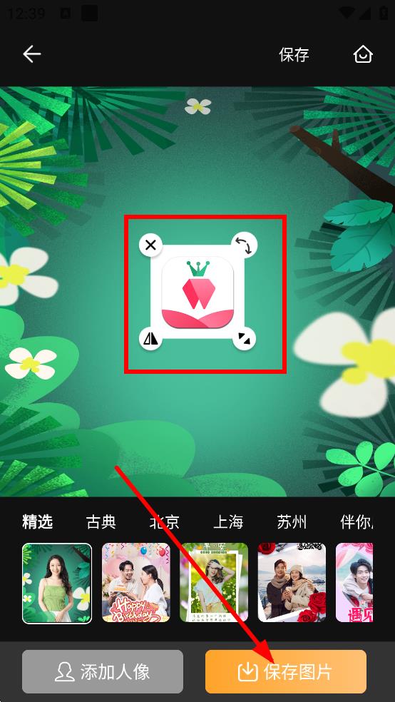 2、在模板編輯頁面,可對添加的元素進(jìn)行調(diào)整,調(diào)整好后點擊保存圖片,保存制作好的圖片。