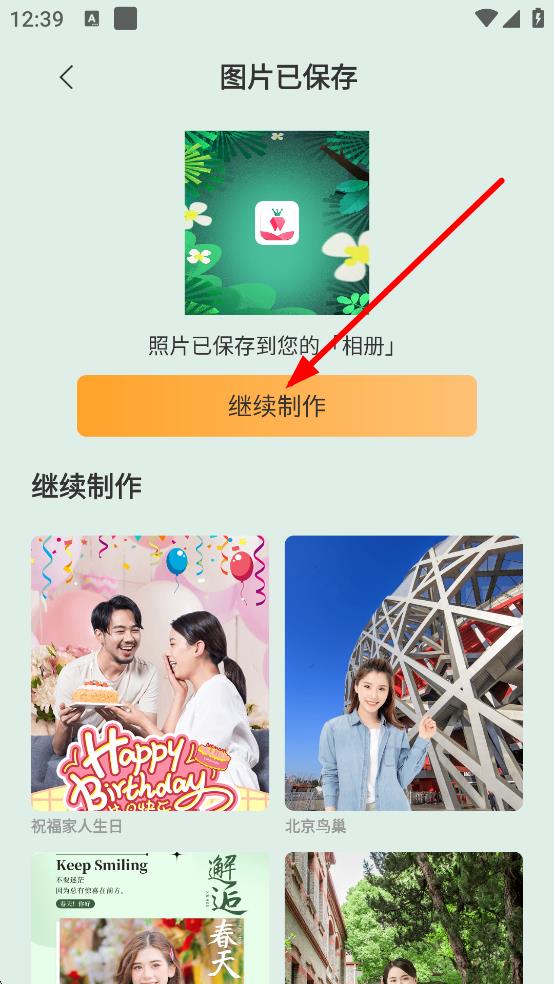 3、圖片保存后,可點擊繼續(xù)制作,選擇其他模板繼續(xù)制作圖片。