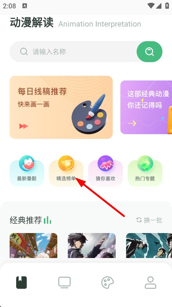 1、在動(dòng)漫解讀頁(yè)面,點(diǎn)擊精選榜單,進(jìn)入精選榜單頁(yè)面。