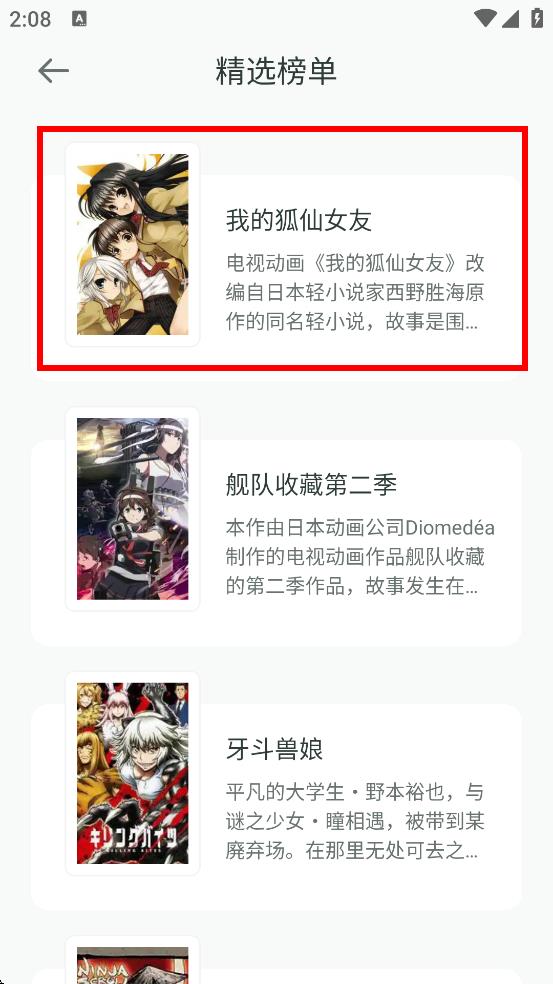 2、在精選榜單頁(yè)面,選擇想看的動(dòng)漫,如我的狐仙女友。