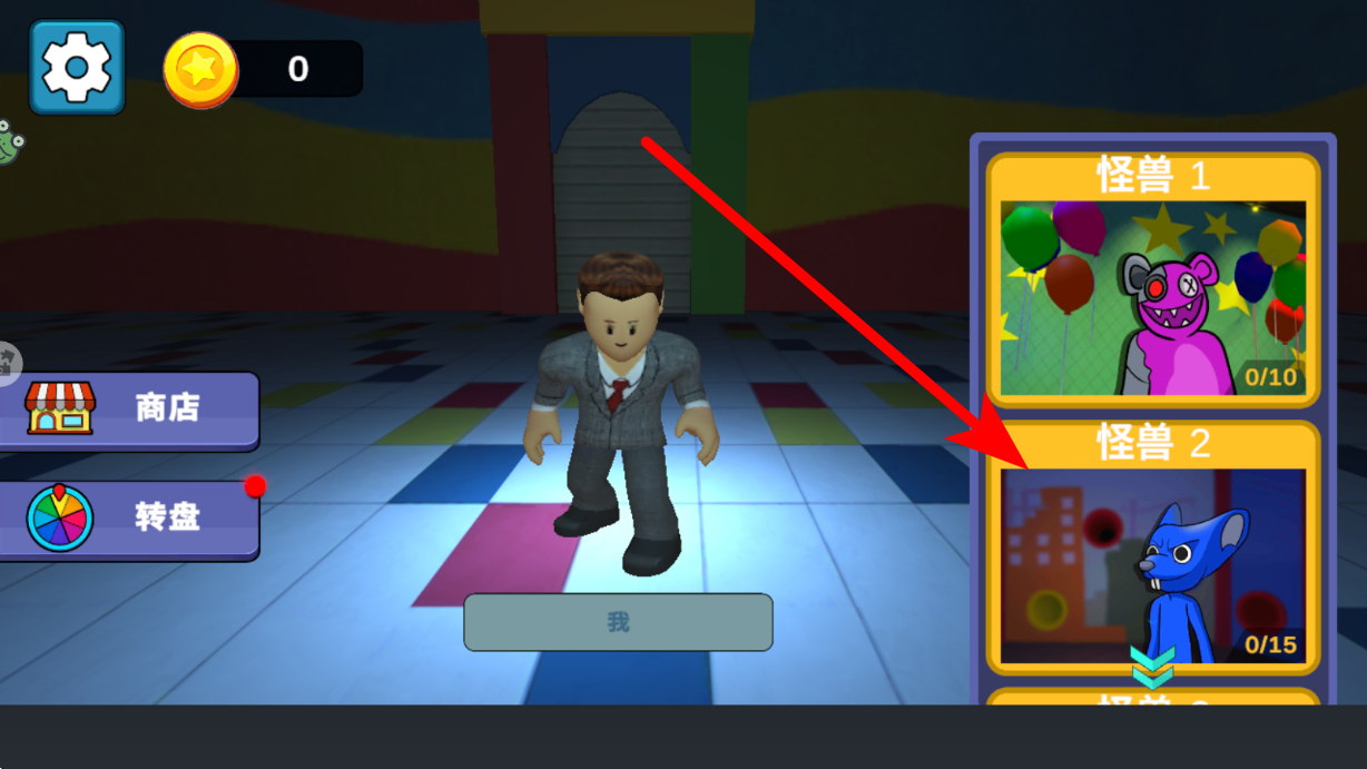 1、開始模式選擇界面,能看到怪獸1,怪獸2等不同怪物模式選項(xiàng),挑選想要體驗(yàn)的模式,點(diǎn)擊進(jìn)入,為后續(xù)尋找方塊與躲避怪物做好準(zhǔn)備。
