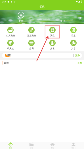 1、打開匯優(yōu)應(yīng)用,點擊洗衣選項,進入洗衣功能頁面。