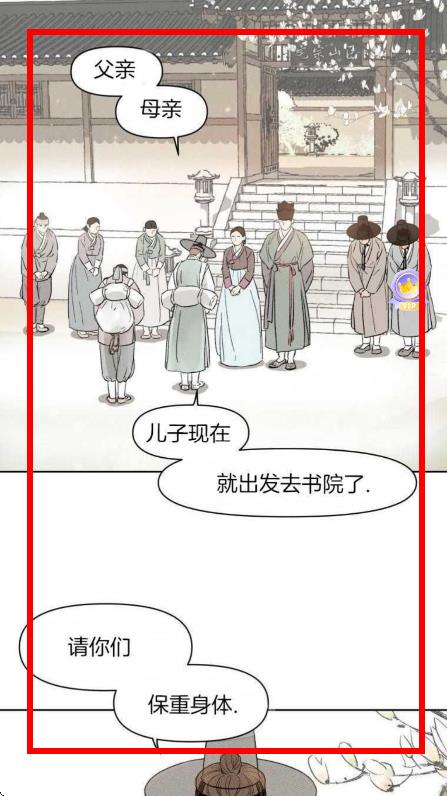 3、繼續(xù)閱讀漫畫,可看到父親母親,兒子現(xiàn)在就出發(fā)去書院了,請(qǐng)你們保重身體等劇情內(nèi)容。