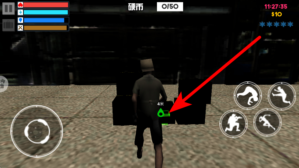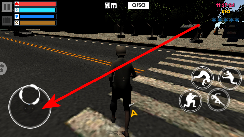 1、進入游戲后選擇關(guān)卡,通過左側(cè)的操控按鈕來控制角色移動方向,靈活調(diào)整,讓角色在街道等場景中穿梭,探索不同的區(qū)域,尋找可用的資源。