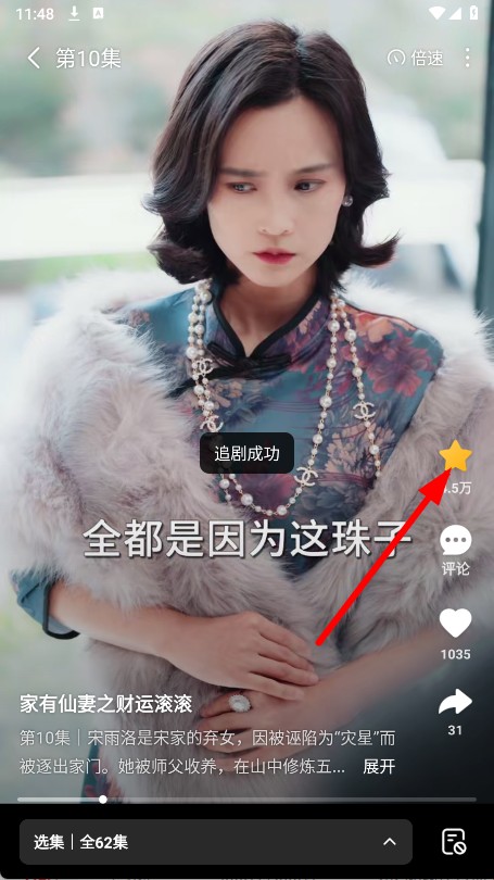 3、點擊右側(cè)星形圖標(biāo)收藏,就能成功追劇,便于后續(xù)查看劇集更新。