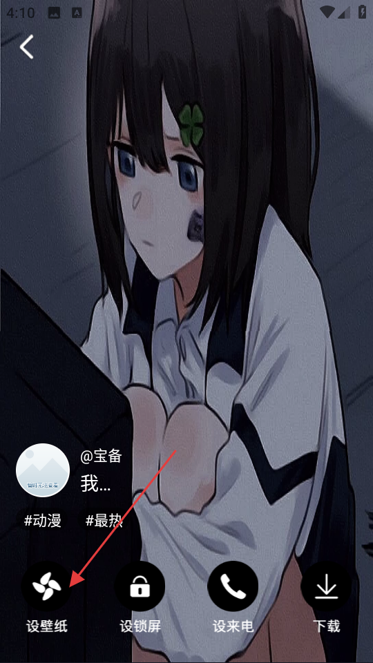3、在壁紙?jiān)斍轫?yè)面,點(diǎn)擊設(shè)壁紙,可將該壁紙?jiān)O(shè)置為壁紙。