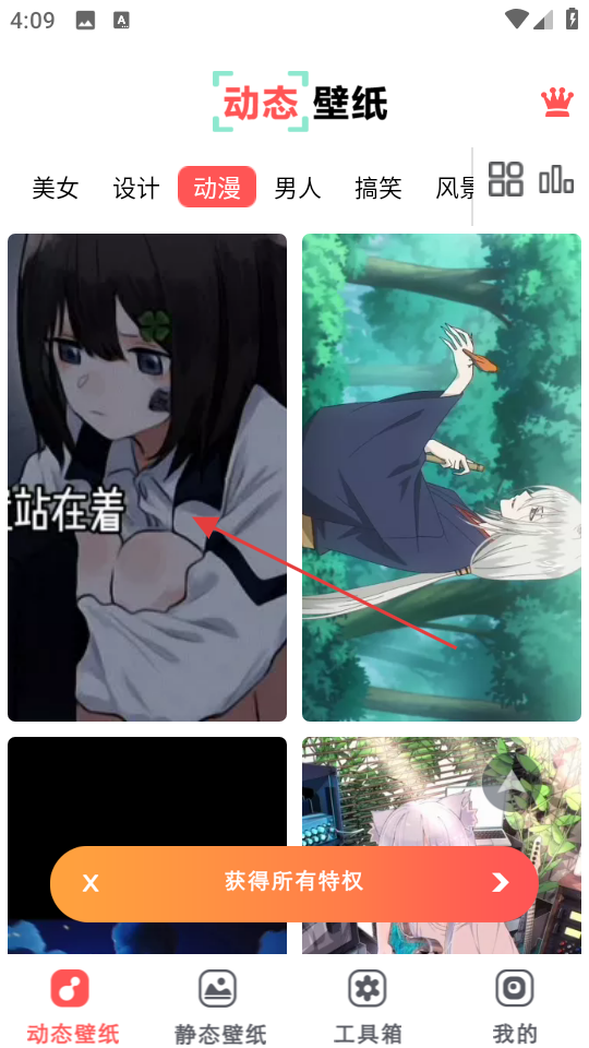2、在動(dòng)漫類動(dòng)態(tài)壁紙中,選擇想要的壁紙,點(diǎn)擊進(jìn)入其詳情頁(yè)面。