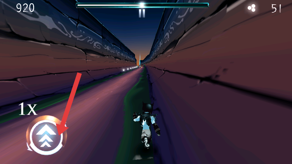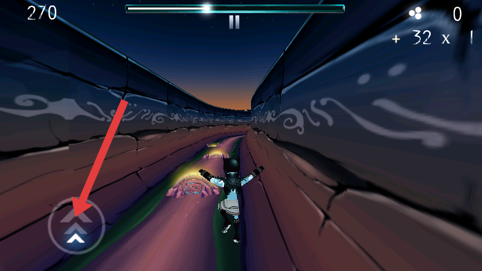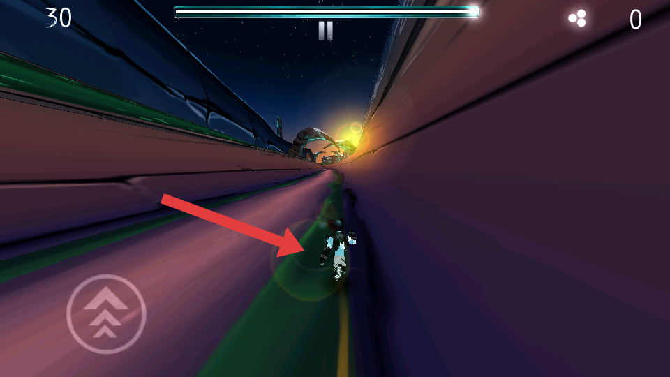 2、賽道上有發(fā)光道具時,點擊左側(cè)向上箭頭按鍵,可讓角色做出相應(yīng)動作去獲取道具,助力游戲進(jìn)程。