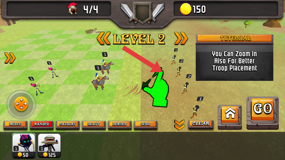 1、利用縮放功能,更清晰地觀察戰(zhàn)場細節(jié),精準放置部隊,根據(jù)敵人分布,將近戰(zhàn)、遠程等不同類型部隊布置在合適位置。
