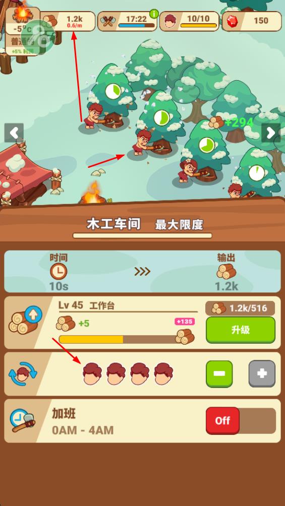3、在木工車間,升級工作臺增加木材產(chǎn)出,同時可調(diào)配居民參與生產(chǎn),合理利用人力,提升木材資源的整體輸出。