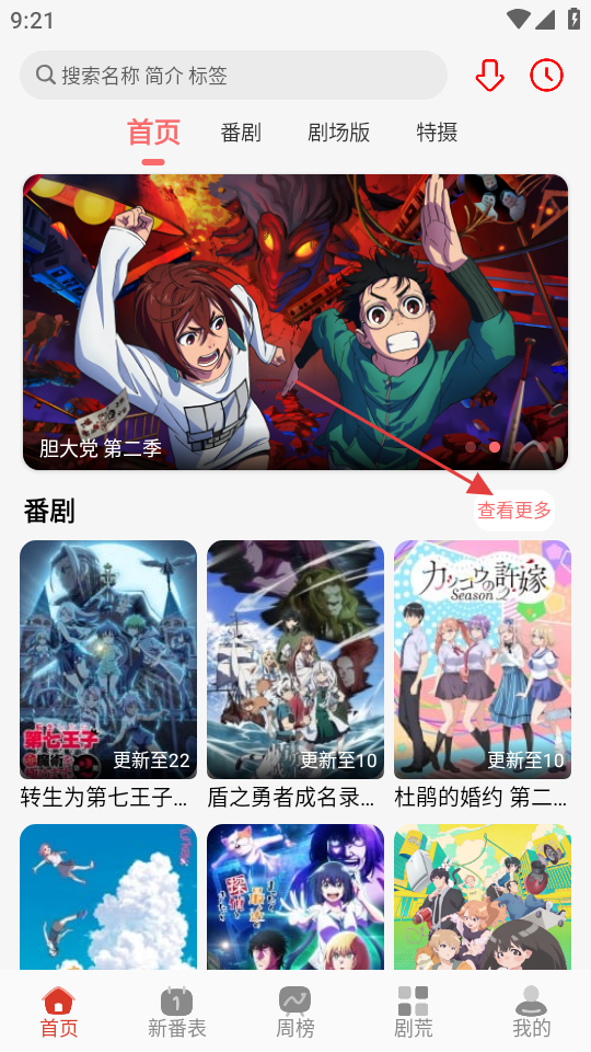 1、在動漫類應(yīng)用首頁,點擊番劇板塊的查看更多,進入番劇篩選頁面。